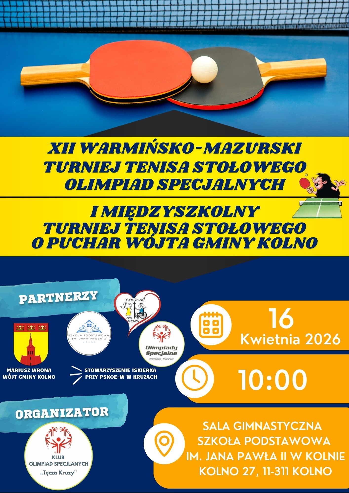 W imieniu Klubu Olimpiad Specjalnych "Tęcza Kruzy", serdecznie zapraszam na Turniej Tenisa Stołowego, w którym sportowa rywalizacja łączy się z ogromną pasją, determinacją i radością. Nasi zawodnicy udowadniają, że na drodze do sukcesu nie ma barier, a każdy zdobyty punkt to efekt ciężkiej pracy i wielkiego serca do gry.Przyjdź, poczuj niesamowitą energię i wesprzyj sportowców głośnym dopingiem! Twoja obecność na trybunach to dla nich dodatkowa motywacja i dowód na to, że razem tworzymy jedną, wielką drużynę.