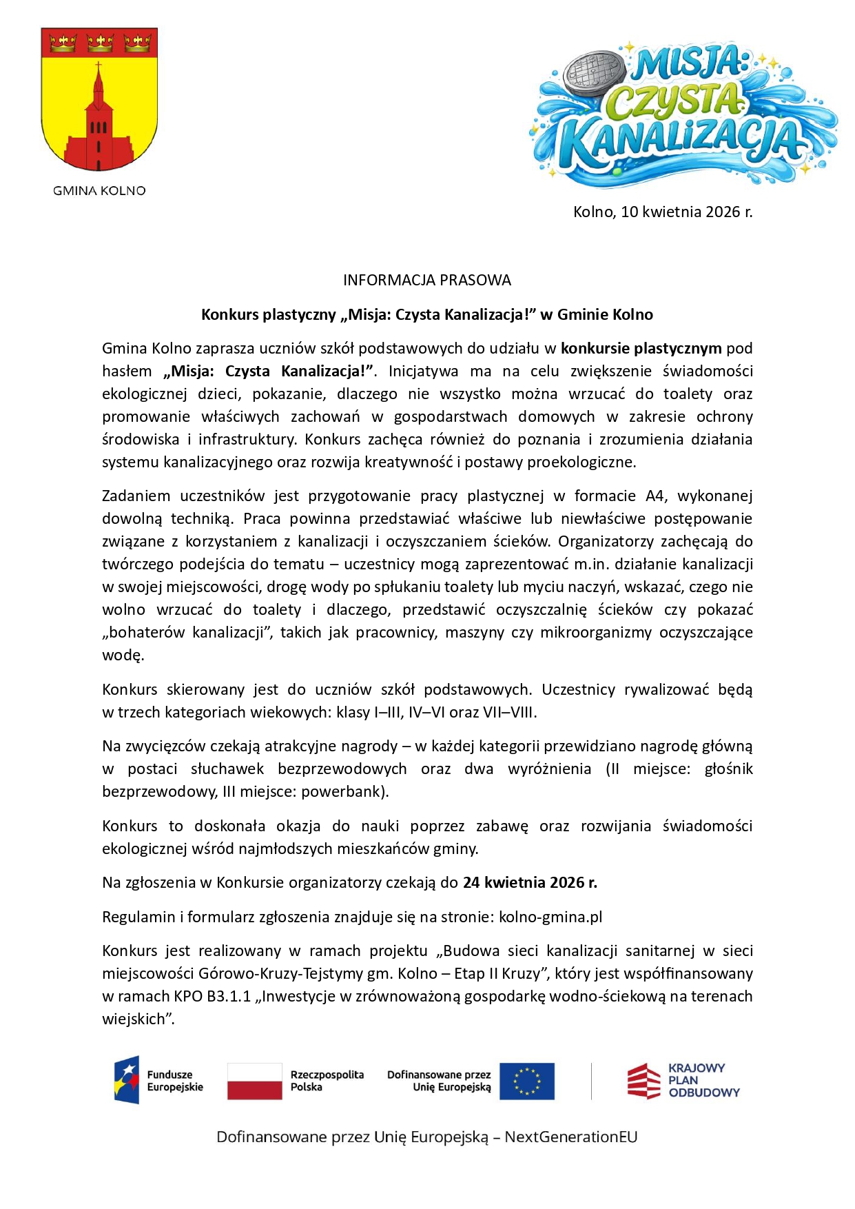 Konkurs plastyczny „Misja: Czysta Kanalizacja!” w Gminie Kolno