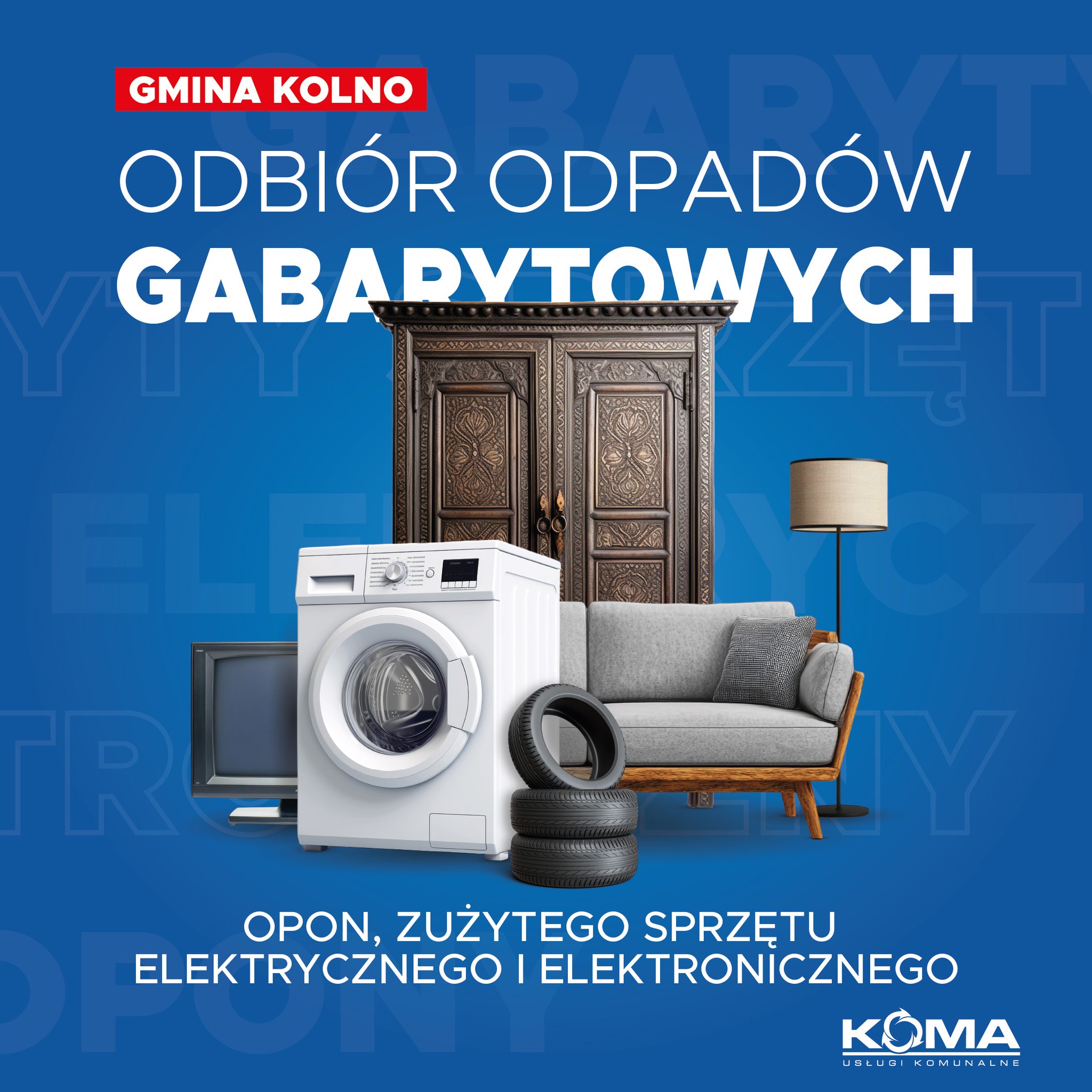 Już w tym tygodniu w Gminie Kolno rusza zbiórka odpadów wielkogabarytowych, elektroodpadów (ZSEiE) i opon! To idealna okazja, by pozbyć się niepotrzebnych rzeczy w sposób ekologiczny i zadbać o czystość naszej okolicy.