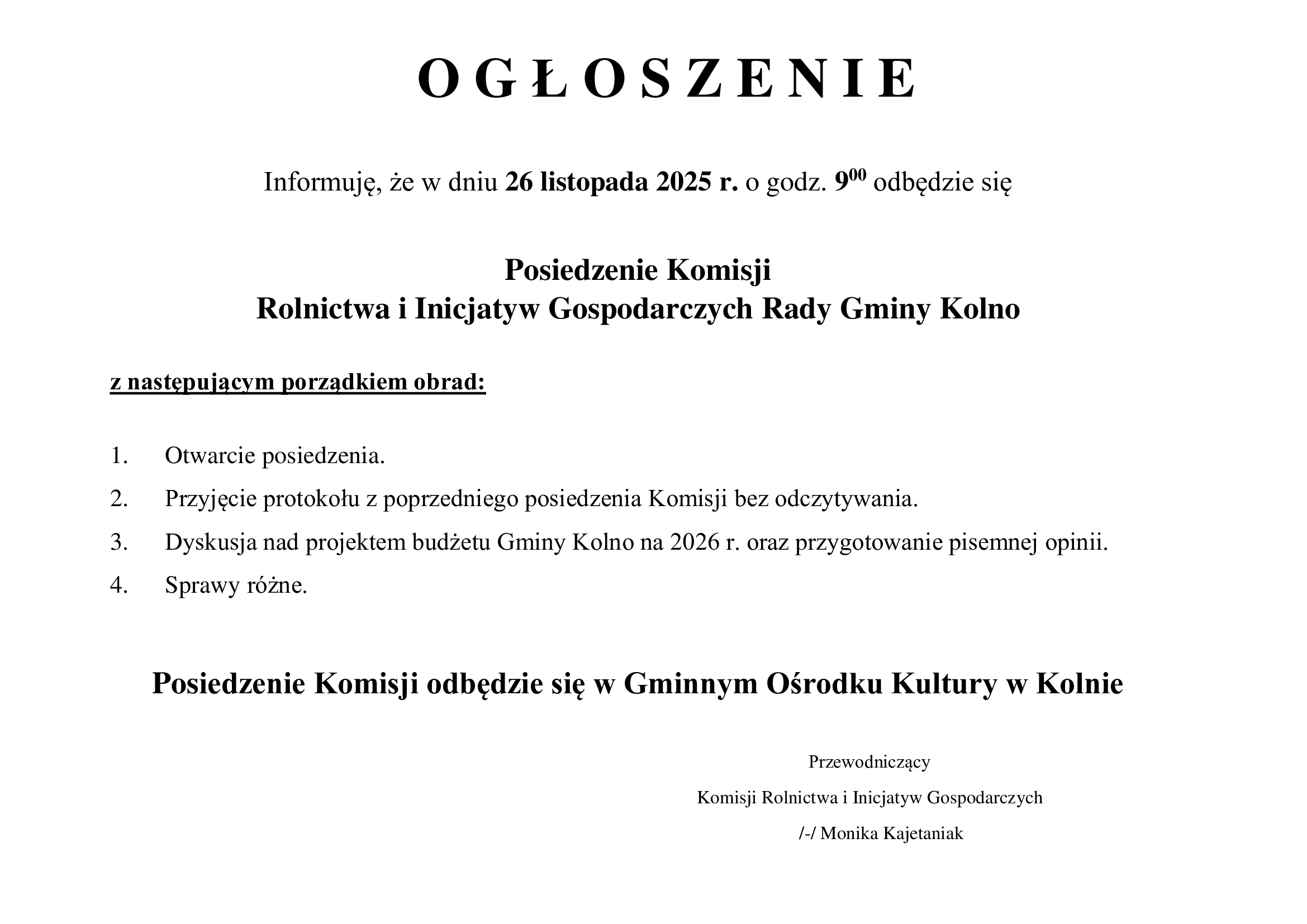 Posiedzenie Komisji Rolnictwa i Inicjatyw Gospodarczych Rady Gminy Kolno