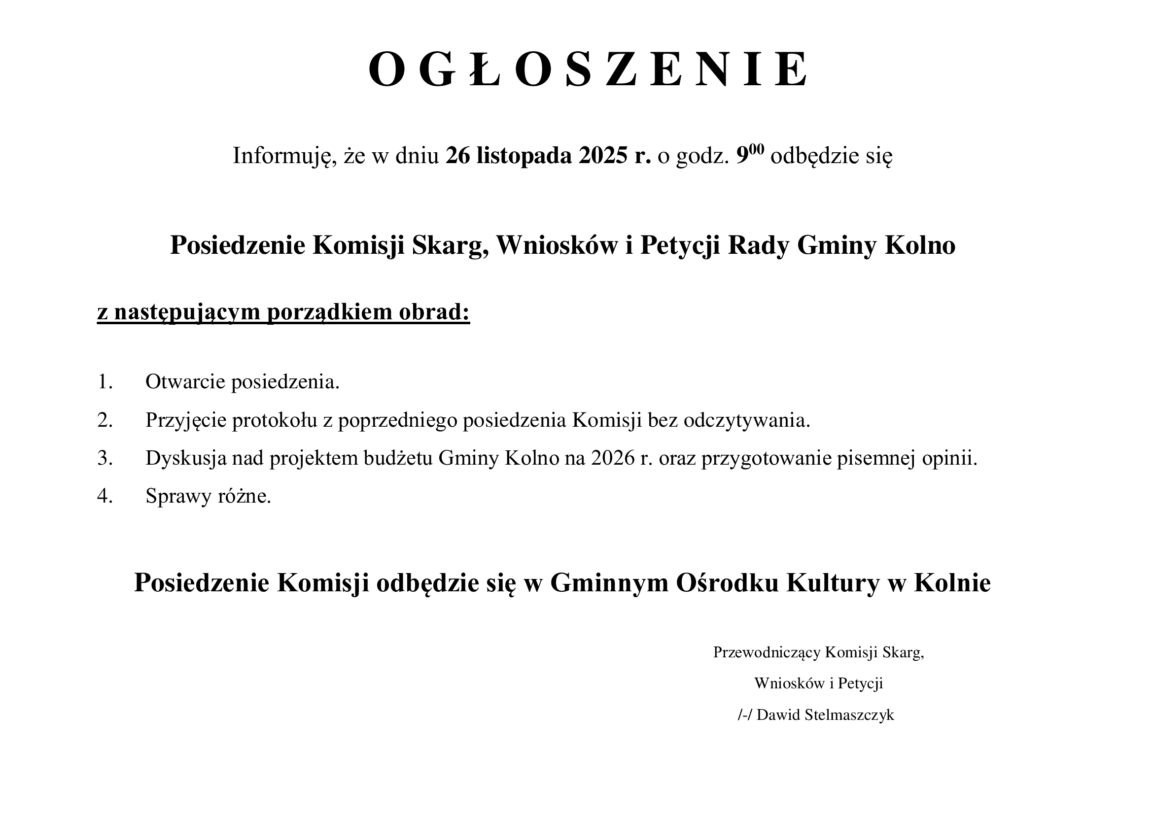 Posiedzenie Komisji Skarg, Wniosków i Petycji Rady Gminy Kolno