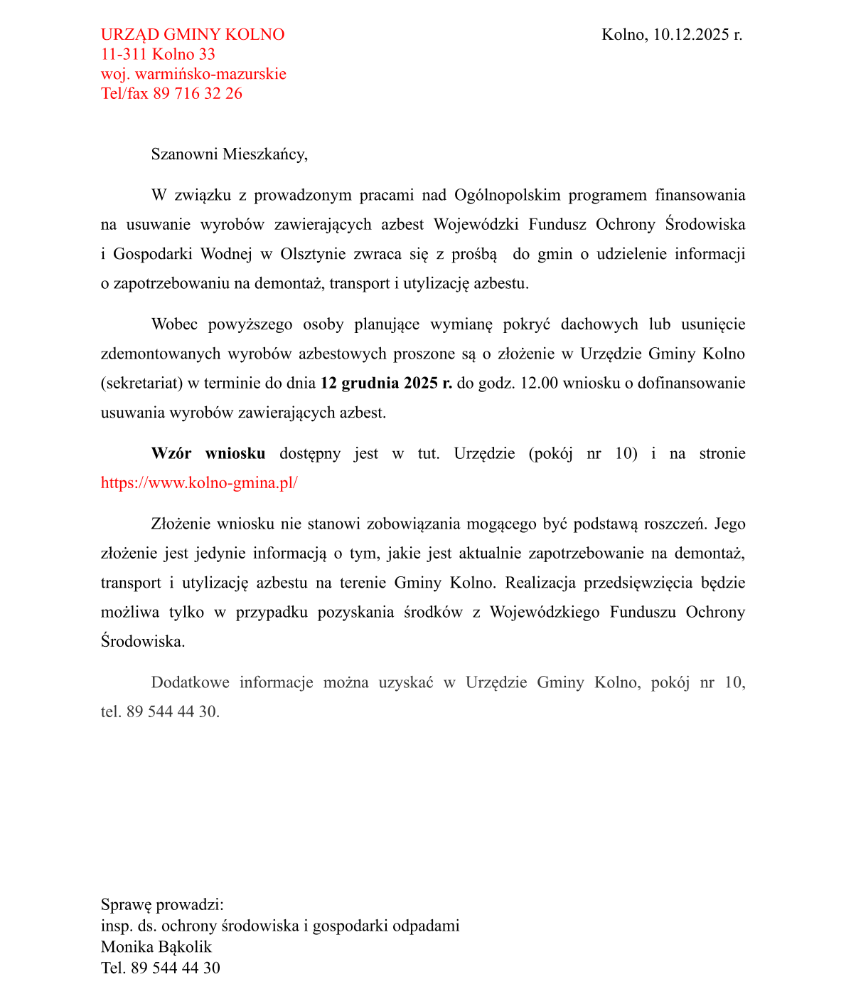 Program dofinansowania na usuwanie wyrobów zawierających azbest - wnioski do 12 grudnia 2025r. |