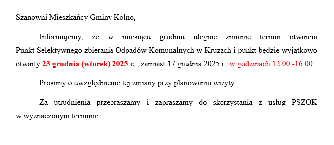 Informacja PSZOK - zmiana terminu otwarcia - grudzień 2025