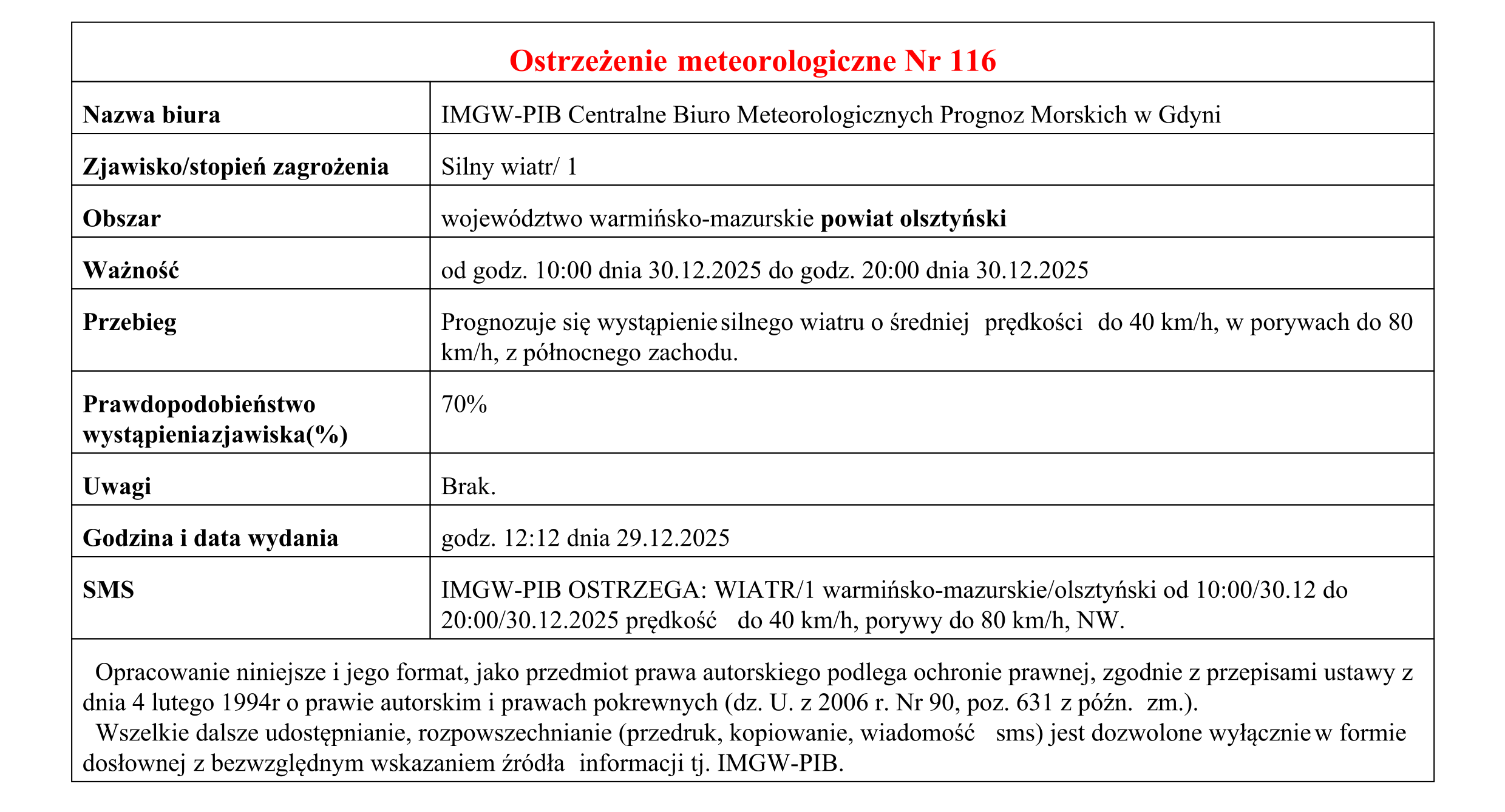 Ostrzeżenia meteorologiczne - Silny wiatr i intensywne opady śniegu!
