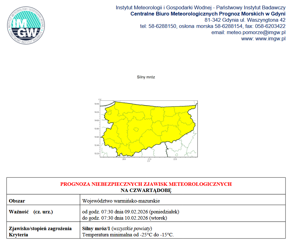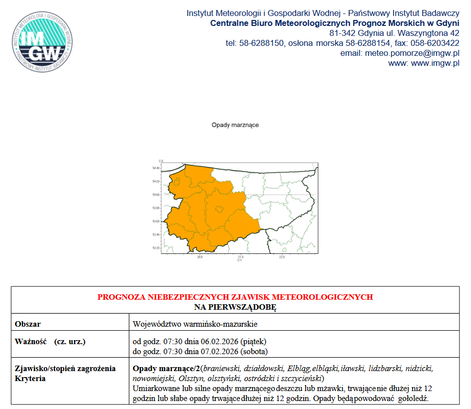 Ostrzeżenia meteorologiczne - Możliwe opady deszczu powodujące gołoledź!