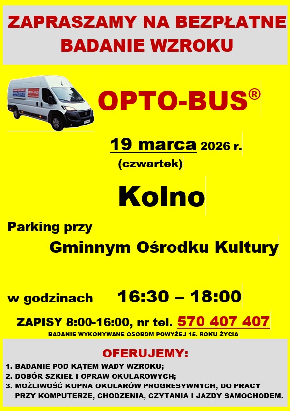 Bezpłatne badanie wzroku w Gminie Kolno! - 19.03.2026r.