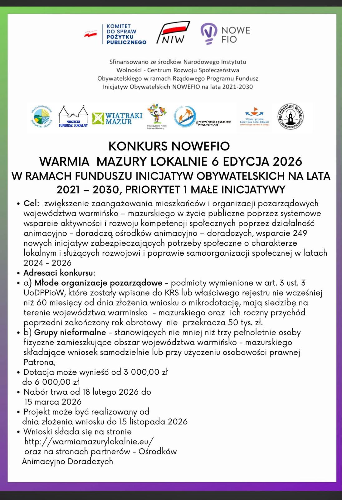 Konkurs „NOWEFIO – Warmia Mazury Lokalnie 6 Edycja 2026”!