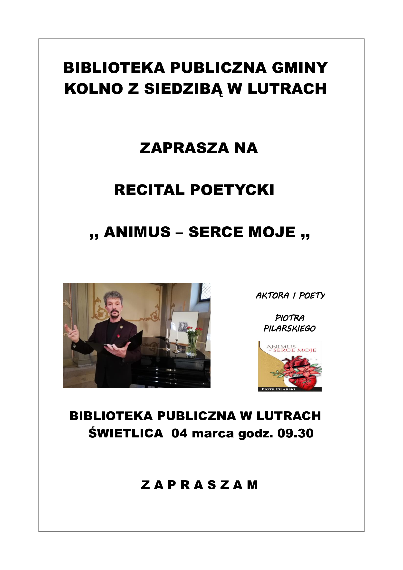 zaprasza na Cykl poetycki zatytułowany Animus w wykonaniu